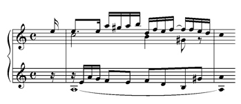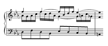 Πρβλ. π.χ. το ακόλουθο αργό μέρος (προσέξτε ότι ο Bach έχει σημειώσει να είναι λεγκάτο τα δέκατα έκτα του μπάσου – όπως είναι το φυσιολογικό για κομμάτια τέτοιου χαρακτήρα):
