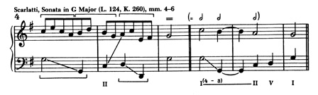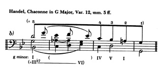 Tο σχετικό σχόλιο (§212) έχει ως εξής: «despite the 6/3 over Bb, which represents the I in g minor, the fourth-progression in the bass imparts to Bb the significance of the root of III which moves to VI; for only Bb as III can be the initial tone of the fourth-progression which is undeniably present here».