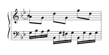 • O Schenker στην §293 δείχνει ότι γνωρίζει το συχνότατο στο μπαρόκ μετρικό φαινόμενο που λέγεται ημιόλια (στα τριμερή μέτρα οι δύο τριάδες που οδηγούν σε μιά πτώση μετατρέπονται σε τρία ζεύγη):[20]